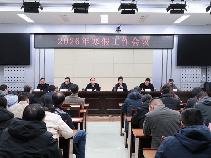 会议从十个方面全面部署了寒假工作。会议强调,寒假是谋划学校事业高质量发展的关键期,也是推进重点工作的窗口期。要做到“休息”与“谋划”两不误,科学绘好“十五五”学校高质量发展“新蓝图”,精准制定2026年发力“任务书”,以战略谋划引领新年新跨越;要做到“心中”与“手上”都有数,聚焦“关键大事”集中力量攻坚克难,统筹“常规要事”有序运转,以钉钉子精神推动寒假工作落地见效;要做到“放心”和“操心”常在线,筑牢意识形态与网络安全“防火墙”,织密校园公共安全“防护网”,拧紧应急值守“责任阀”,以切实举措守护假期和谐安宁。会议还就寒假期间党风廉政建设作了安排和强调。(撰稿:黄栋栋;编辑:毛星懿;审核:杨安升、黄灿)